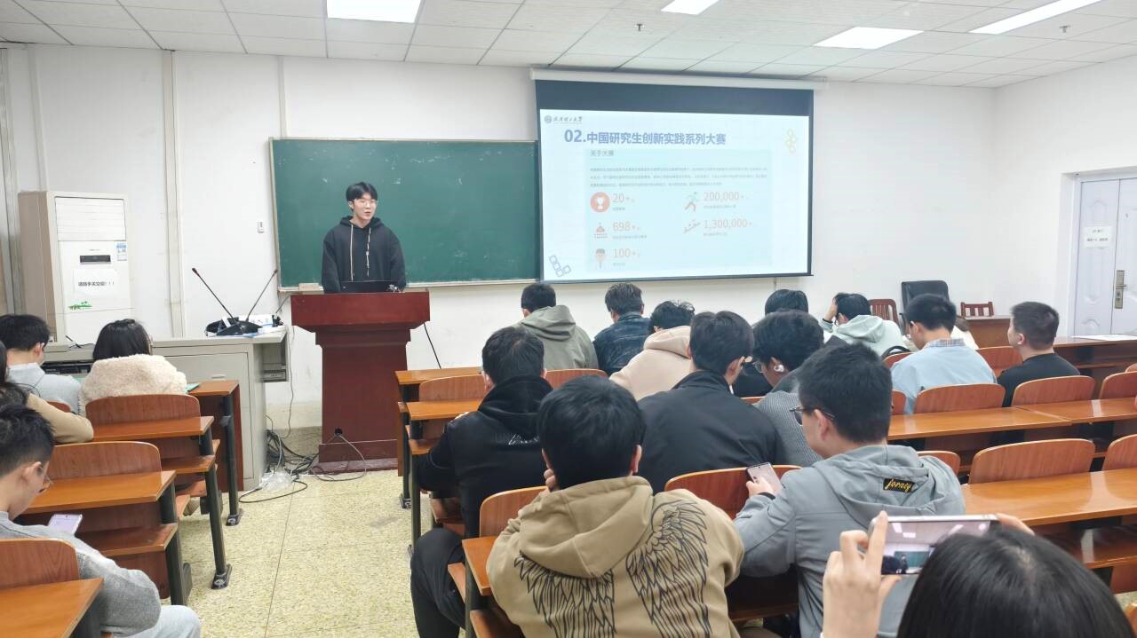讲座伊始,主讲人谭欢首先对“中国研究生创新实践系列大赛”进行了系统性介绍。他结合官方资料,详细解读了该系列赛事的创办历史、发展规模、主题设置及社会影响力。他指出,该系列赛事作为研究生培养创新意识和提升实践能力的重要平台,已涵盖二十余个主题,每年吸引全国上百所高校、超二十万名学生参与,产生了广泛的学术与社会效应。